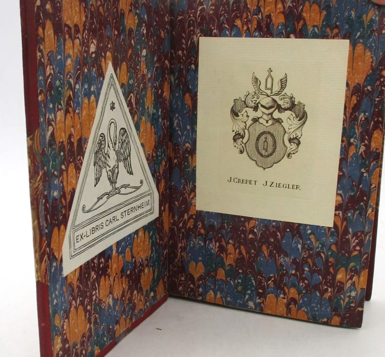 Édition originale illustrée d'un frontispice de Georges Rochegrosse. Un des 50 exemplaires sur papier de Hollande, seul grand papier annoncé à la justification (Clouzot annonce 10 exemplaires sur Chine). Ex-libris héraldique de J[acques] Crépet et de J[ean] Ziegler (fils du précédent), ex-libris gravé Carl Sternheim, un célèbre auteur et dramaturge allemand. Clouzot, p. 35 (annonce 1882 comme date de l'édition originale). * Membre du SLAM et de la LILA / ILAB Member. La librairie est ouverte du lundi au vendredi de 14h à 19h. Merci de nous prévenir avant de passer,certains de nos livres étant entreposés dans une réserve.