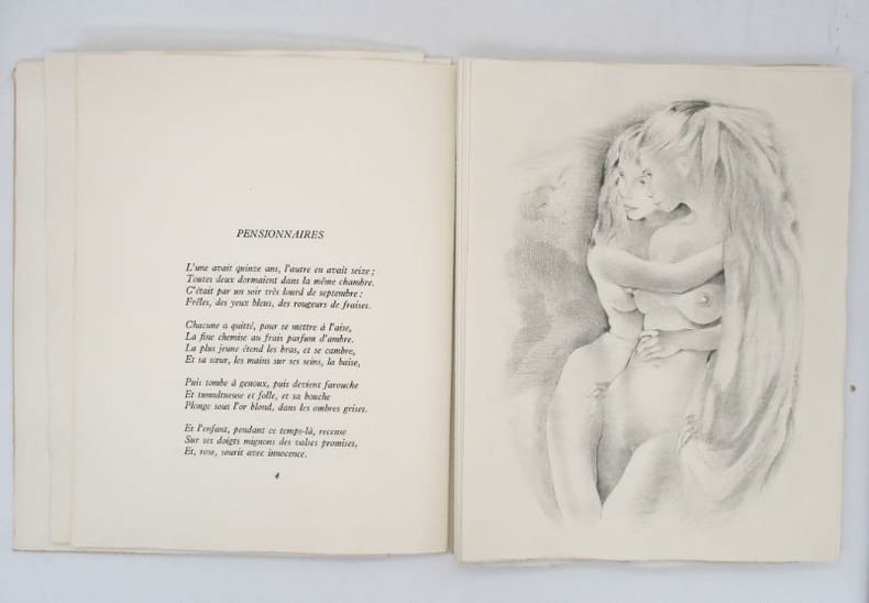 Aux fortes originales de : Marianne Clouzot, Roger Ferrero, Berthommé Saint-André, Perraudin, Schem, Raoul Serres en 6 volumes sous (3 boitages) numéroté 1700 exemplaire n°1149, tres bel état contient :vers de jeunesse poemes saturniens fetes galantes, la bonne chanson/ romances sans paroles, sagesse, jadis et naguere, amour parallelement bonheur, chansons pour elle liturgie intimes odes en son honneur élégies dans les limbes, chair dedicaes epigrammes, invectives poesies diverses.