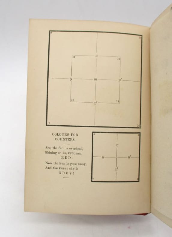 Londres, MacMillan and Co., 1887. In-12, 96 pp., toile rouge à la bradel de l'éditeur, titre doré au premier plat, dos long (dos gauchi et terni, petits frottements, diagramme et jetons manquants).
