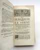 Paris, Pralard, 1678. 1 vol. in-4°, basane brune mouchetée, dos à nerfs orné de caissons dorés, pièce de titre en maroquin rouge. Reliure de l'époque, caisson de tête réparé anciennement avec un morceau de cuir comportant des fleurons différents de ceux utilisés dans les autres caissons, coins émoussés. Titre orné d'une vignette gravée en taille-douce, (14) ff., 602 pp. Ex-libris Revel sur le titre. Deux cahiers intervertis (le S relié avant le R). manque la dernière p. (603) dont le texte a été recopié à la main au début du XIXe siècle.