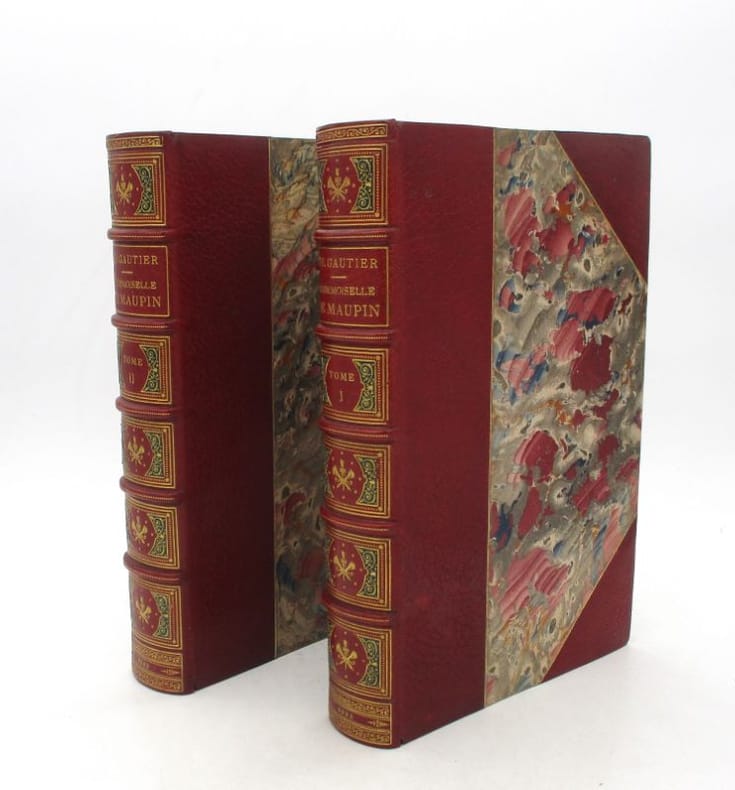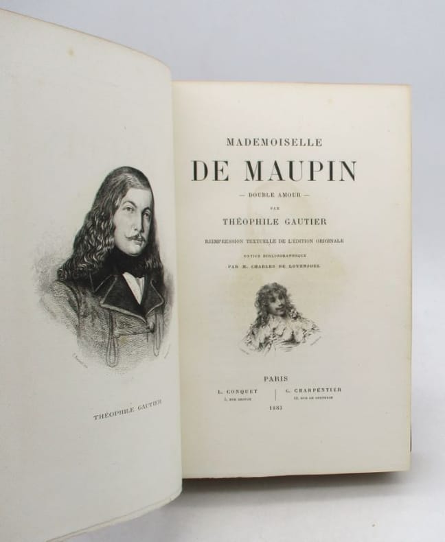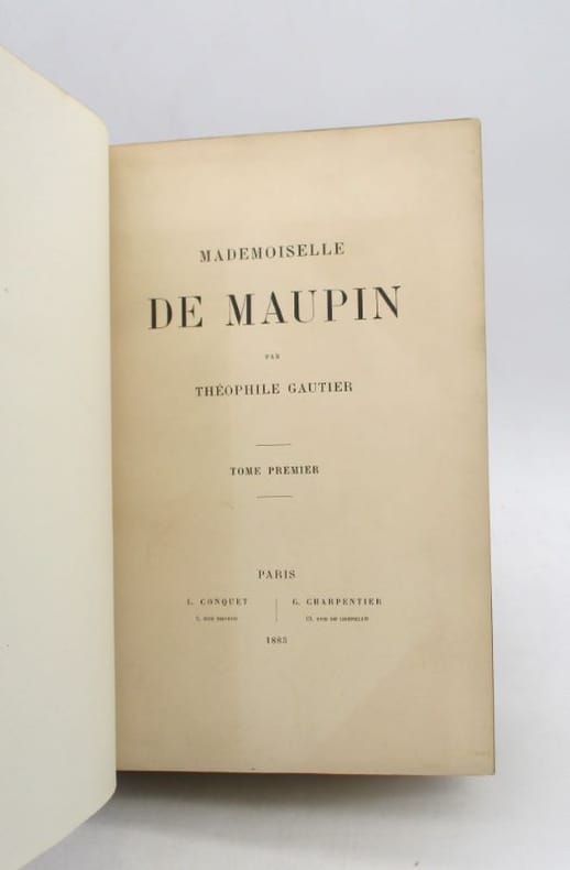 Paris Charpentier 1880 1 in-8 broché. Avec un portrait de l'auteur gravé par Eug. Abot d'après le médaillon de David d'Angers (1884). Et un portrait de Mademoiselle de Maupin par Théopile Gautier reproduit en fac-similé. Paris, Charpentier éditeur, 1880, in-8, maroquin havane, titre doré sur le dos à 5 nerfs, large dentelle dorée intérieure, gardes de papier marbré, doubles filets dorés sur les coupes, tranches dorées sur témoin, sous étui bordé, 421 pages.