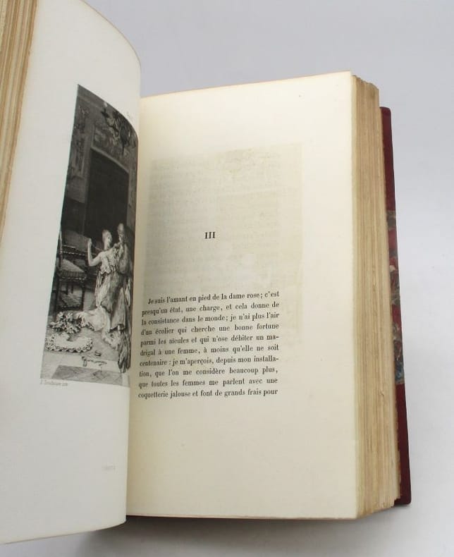 Édition ornée d'un portrait de l'auteur gravé par Burney d'après Nanteuil en frontispice et de 23 planches (dont le titre gravé du second volume répété), la plupart gravées par Champollion d'après Toudouze. Un des 350 exemplaires sur vélin à la cuve, second papier après 150 Japon extra. Il comporte une notice bibliographique de Charles de Lovenjoul. En fin de volume, il a été ajouté les Essais pour l'illustration de Mademoiselle de Maupin : trois gravures d'après Jeanniot et la gravure de Champollion d'après Toudouze pour le douzième chapitre (comprises dans le compte des planches du volume). Ex-libris d'Alfred Alphandery gravé par G. Huot, qui fut adjoint au maire d'Alger pendant et administrateur de la Banque d'Algérie; ex-libris gravé par Decaris d'Y. Durand-Noël, chanteur lyrique de l'Opéra de Paris. Belle reliure de demi-maroquin signée de V. Champs. * Membre du SLAM et de la LILA / ILAB Member. La librairie est ouverte du lundi au vendredi de 14h à 19h. Merci de nous prévenir avant de passer,certains de nos livres étant entreposés dans une réserve.