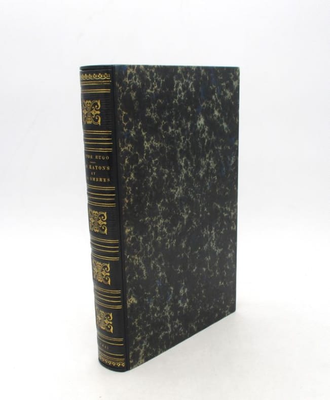 Paris Delloye 1840 1 vol. relié in-8, demi-maroquin vert sapin à coins bordé de filets dorés, dos à quatre nerfs frappé en pied du chiffre couronné d'Henri d'Orléans, caissons encadrés de filets dorés et à froid, plats de chagrin vert, tranches marbrées, XIII + 389 pp. Édition originale de ce célèbre recueil paru dans la première édition collective des oeuvres complètes de Hugo. On y trouve notamment les fameux poèmes "Tristesse d'Olympio" et "Océano Nox". Quelques infimes rousseurs, sinon très bel exemplaire en reliure d'époque au chiffre du grand bibliophile le duc d'Aumale à qui Hugo écrira en 1880 : « Pour moi, votre royauté a cessé d'être politique, et maintenant est historique. Ma République ne s'en inquiète pas. Vous faites partie de la grandeur de la France et je vous aime ».