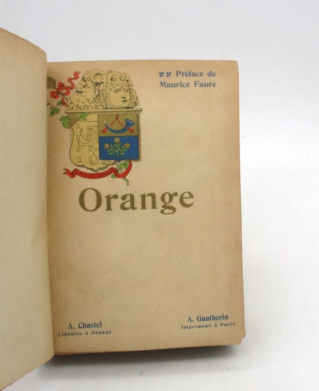 Paris - Orange Imprimé par Gautherin - Librairie A. Chastel (sans date, vers 1901) 1901 in 12 (18x13,5) 1 volume reliure demi chagrin havane de l'époque, dos à nerfs soulignés de filets à froid et orné de fleurons dorés (lettres FP dorées sur le haut du plat supérieur), pièce de titre de cuir vert, couverture illustrée en couleurs conservée, VII, XI et 236 pages, avec de nombreuses photographies en noir et blanc, dont hors-texte, et un plan dépliant in fine. Photographies de H. Morel. Préface de Maurice Faure. Très bel exemplaire, bien relié ( Photographies sur demande / We can send pictures of this book on simple request )
