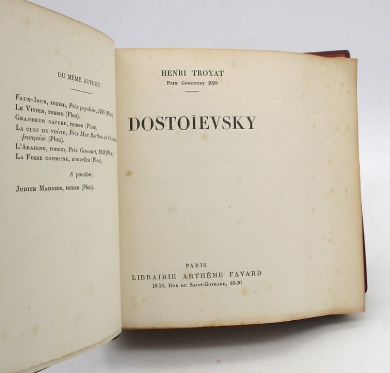 Bel exemplaire de cette "édition de luxe, comportant un portrait de Gide par P.-A. Laurens, et un portrait en lithographie de Dostoievsky, et 2 fac-similé de l'écriture de Gide et de Dostoievsky, tirée à 1120 exemplaires numérotés, celui-ci un des 1000 sur vélin Lafuma" (Talvart et Place, Tome 7, p.44). ...................... Photos sur demande ..........................