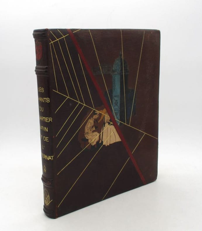 Paris, Au Luxembourg, s.d. In-4, 214 pp., maroquin brun mosaïqué et doré de P. Guglielmoni, dos à faux-nerfs orné de même, tête dorée, couverture conservée (petite déchirure marginale p. 8, petites épidermures, quelques rousseurs et taches, premier plat presque débroché).