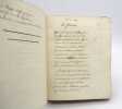 Manuscrit reproduisant les uvres du Philosophe de Sans-Souci, un ouvrage composé par Frédéric II de Prusse et publié, en français, en 1750. Cette copie débute sur une table manuscrite, la préface puis les Odes, les Chants et enfin les Épîtres. La version imprimée présente les Épîtres avant les Chants mais le présent exemplaire contient bien l'ensemble des textes. Une note manuscrite accompagne l'ouvrage mentionnant une provenance du mamelouk Roustam, premier valet de chambre de Napoléon Ier, ramené de la Campagne d'Égypte. Celui-ci participa à toutes les campagnes napoléoniennes avant le premier exil dans lequel il ne suivit pas l'empereur, ce qui lui valut une mise à part mais aussi une fin de vie relativement paisible. Fermeture pour congés, TRAITEMENT DES COMMANDES SUPSENDU JUSQU'AU 29 DECEMBRE. * Membre du SLAM et de la LILA / ILAB Member. La librairie est ouverte du lundi au vendredi de 14h à 19h. Merci de nous prévenir avant de passer,certains de nos livres étant entreposés dans une réserve.