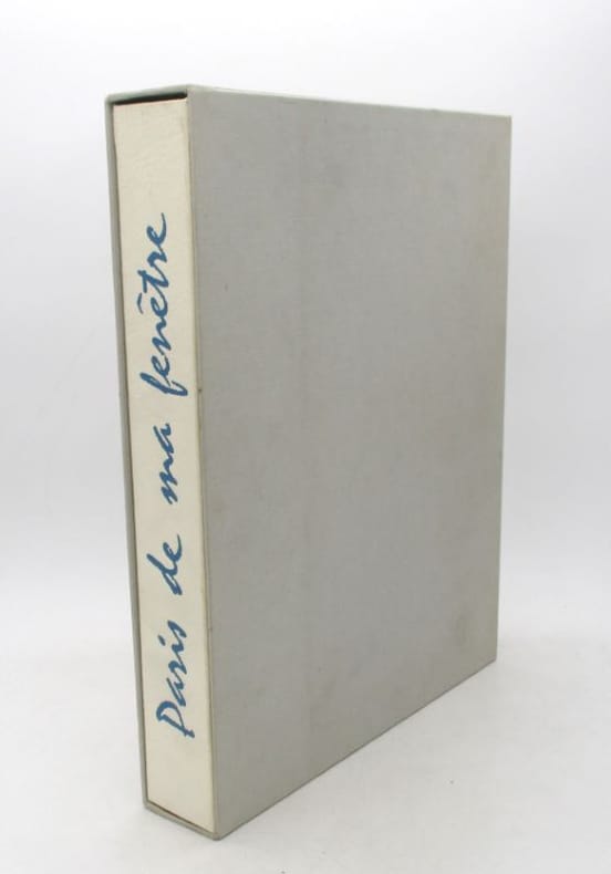 Genève Editions du Milieu du Monde 1944 1 vol. broché in-12, broché, couverture rempliée, non coupé ni rogné, 239 pp., portrait photographique en frontispice sur papier couché. Edition originale précédée d'une préface de Francis Carco datée du 11 août 1944. Un des 23 exemplaires numérotés sur vergé de Montval, tirage de tête. En parfait état.Réédition de De ma fenêtre, paru deux ans plus tôt aux éditions des «Armes de France», augmentée de onze textes publiés dans Le Petit Parisien d’octobre à décembre 1941. C’est la dernière fois que Colette utilisait un procédé auquel elle avait eu recours tout au long de sa carrière et qui consistait à reprendre en les remaniant légèrement des textes qu’elle avait d’abord publiés dans la presse.Outre une présentation des textes en sections, Colette a choisi un nouveau titre. Cela pourrait être dû à la parution chez Grasset en 1943 de l’ouvrage de l’allemand Friedrich Sieburg, Blick durch Fenster, traduit par André Cœuroy sous le titre De ma fenêtre… Plus vraisemblablement, le volume ayant été imprimé et édité en Suisse, on peut penser que l’ajout du nom de la capitale française conférait à l’ouvrage un attrait supplémentaire.Le texte est précédé d’une préface de Francis Carco qui paraît ici pour la première fois. L’auteur de Jésus-la-Caille s’était exilé en Suisse en 1942 en raison des origines juives de son épouse Eliane et publia plusieurs ouvrages aux éditions du Milieu du Monde, situées à Genève, où paraîtra également L’Étoile Vesper en 1946.Dans son texte, daté du 11 août 1944, Carco rend hommage au «Paris noir et sans visiteur», à la «Ville éteinte» de l’Occupation, et suit par l’imagination et le souvenir les rues et les quais de la capitale, «ses méandres, ses berges, ses remorqueurs, ses chalands, ses fumées, ses sirènes, dont la nostalgie m’est toujours plus amère et plus douce à chérir». La distance – près de quatre ans depuis la parution des premiers textes qui forment le recueil de Colette -, de même que la perspective d’une libération avec le débarquement des alliés au mois de juin, donnent un sens nouveau au recueil: «Il fallait que ce livre fût écrit: il fournit la preuve que chacun, dans sa sphère, a "tenu" contre l’adversité» et que «le grand écrivain qu’est Colette a fourni l’exemple qu’on attendait de lui.»Bien qu’imprimé en 1944, il semble que l’ouvrage n’ait été distribué en France qu’à partir de 1946. Rare en grand papier. (Notice de Frédéric Maget pour le catalogue de la collection Colette des Clarac)