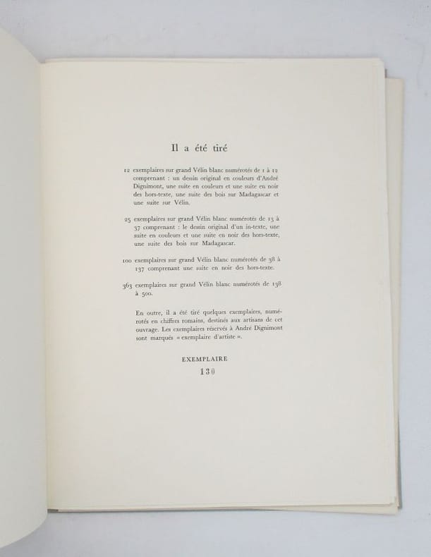 Édition illustrée de 12 planches en couleurs et de gravures sur bois dans le texte. Elle contient également une préface de Francis Carco. Un des 120 exemplaires sur vélin blanc avec une suite en des hors-texte. Bel exemplaire. * Membre du SLAM et de la LILA / ILAB Member. La librairie est ouverte du lundi au vendredi de 14h à 19h. Merci de nous prévenir avant de passer,certains de nos livres étant entreposés dans une réserve.