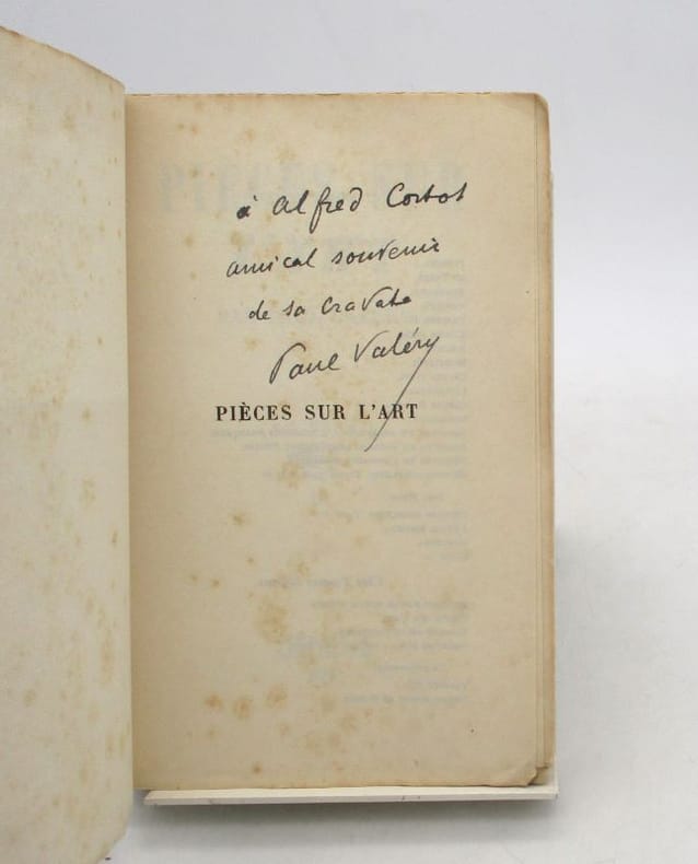 "Édition collective en partie originale, tirée à 400 exemplaires, tous numérotés, plus quelques-uns nominatifs. Un des 50 exemplaires de tête sur Japon; celui-ci n°11. Luxueuse, avec sa belle vignette de couverture gravée sur bois et ses faux-titres et lettrines imprimés en bleu ciel, cette collective rassemble bien des ""pièces sur l'art"", avec ce que cela suppose de disparate, plutôt que des écrits affichant ouvertement une vraie ambition théorique. Parmi ces pièces, Au concert Lamoureux en 1893, Propos sur le progrès et Glose sur quelques peintures figurent ici en édition originale. Exemplaire à l'état de neuf. Karaïskakis et Chapon, Bibliographie des œuvres de Paul Valéry, n°173."