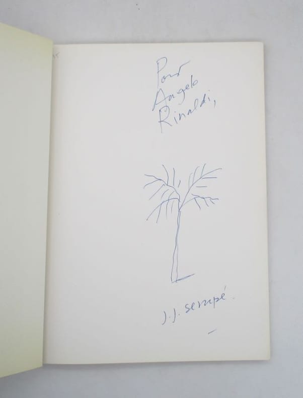 Édition originale de cet ouvrage illustré des compositions en couleurs de Sempé. Cet exemplaire comporte un envoi autographe signé accompagné d'un croquis du dessinateur à Angelo Rinaldi, un écrivain et journaliste français. * Membre du SLAM et de la LILA / ILAB Member. La librairie est ouverte du lundi au vendredi de 14h à 19h. Merci de nous prévenir avant de passer,certains de nos livres étant entreposés dans une réserve.