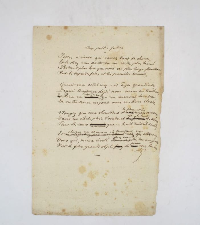 Manuscrit autographe signé de ses initiales de ce sonnet comportant plusieurs corrections et ajouts autographes. Le poème sera publié dans La Revue des deux mondes en 1873. * Membre du SLAM et de la LILA / ILAB Member. La librairie est ouverte du lundi au vendredi de 14h à 19h. Merci de nous prévenir avant de passer,certains de nos livres étant entreposés dans une réserve.