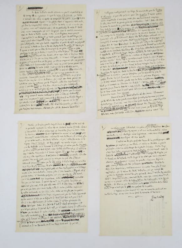 Manuscrit autographe signé avec corrections et ajouts autographes d'une critique d'un ouvrage de Le Breton à propos de Victor Hugo et de sa liaison avec Juliette Drouet. Il y disserte sur les causes de l'infidélité d'Hugo envers sa femme Adèle qu'il attribue autant à l'infidélité de l'épouse du poète qu'à son inaptitude à comprendre son oeuvre. Dans la seconde partie, il s'intéresse à la critique des oeuvres d'Hugo dans l'ouvrage d'André Le Breton, le tout sans complaisance. * Membre du SLAM et de la LILA / ILAB Member. La librairie est ouverte du lundi au vendredi de 14h à 19h. Merci de nous prévenir avant de passer,certains de nos livres étant entreposés dans une réserve.