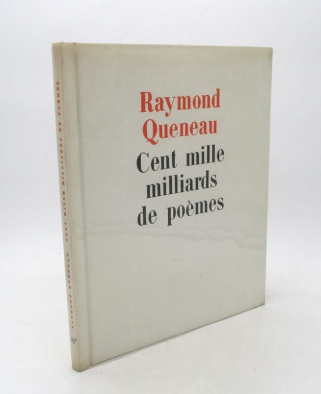 ed. Gallimard 1961 in-4 reliure toile ed., maquette de MASSIN, mode d’emploi par l’auteur en tête de volume et postface de François LE LIONNAIS pour l’un des livres les plus inventifs du XXe siecle et d’une lecture quasi infinie, edition originale (il n’est pas annonce de grand papier) numerotee, envoide Queneau