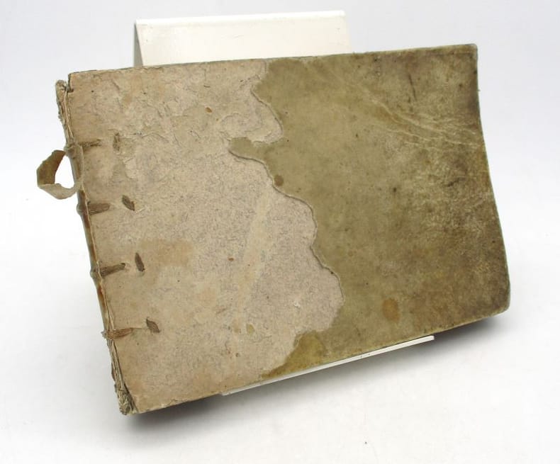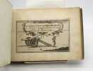 1 vol. in-16 oblong (12,5 X 17 cm). XVIIe siècle. 71 planches (dont 3 titres) avec des feuillets blancs intercalés. Plein vélin teinté brun, dos long muet, tranches rouges. Coins et coiffes frottés, 25 planches ont été malhabilement coloriées, des inscriptions manuscrites au crayon au dos de 18 planches, mouillure angulaire sur 3 ff. sans gravité.