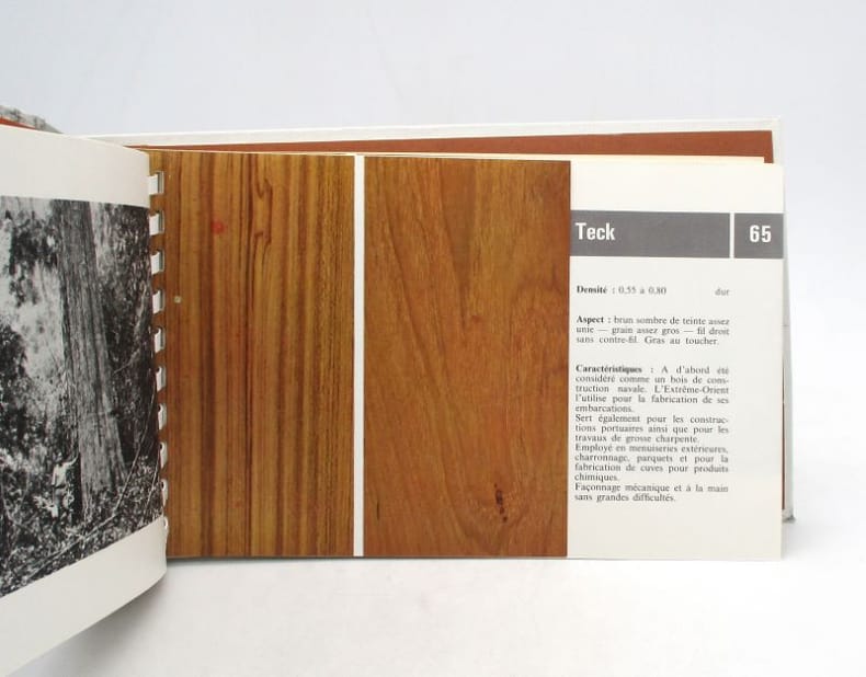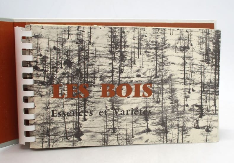 H. Vial , Dourdan, 1963 In-16 Reliure éditeur pleine toile, 16,2 cm sur 27,3. 72 pages, format à l'italienne, couverture rigide en toile imprimée grise avec des photographes d'arbres et de branches. Reliure de type spiralée, contre plat en feutrine rousse. Une description de l'essence en Anglais, Allemand et Français. Belle documentation pour la reconnaissance des bois sinon bon état d’occasion.