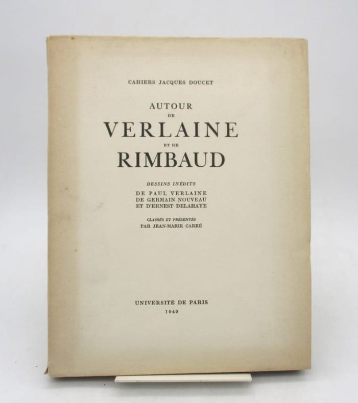 Société des Amis de la bibliothèque littéraire Jacques Doucet Broché 1949 In-4 (22 x 29 cm), broché, couverture rempliée. ÉDITION ORIGINALE. L'auteur avait déjà consacré un ouvrage à Rimbaud ('Lettres de la vie littéraire d'Arthur Rimbaud'). Dessins inédits de Paul Verlaine, Germain Nouveau et Ernest Delahaye. Un des 100 exemplaires (n°68) sur Vélin Crèvecoeur du Marais (premier papier). Bel état. Livraison a domicile (La Poste) ou en Mondial Relay sur simple demande.
