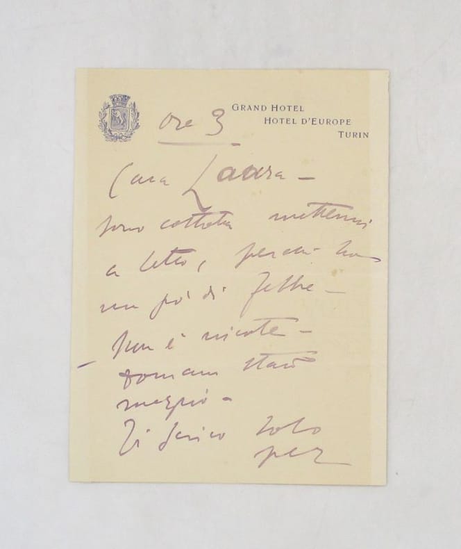 2 lettres autographes signées en italien : 1- Turin, s.d. In-12, 2 pp. à "Cara Laura". 2- New York, s.d. In-4, 2 pp. * Membre du SLAM et de la LILA / ILAB Member. La librairie est ouverte du lundi au vendredi de 14h à 19h. Merci de nous prévenir avant de passer,certains de nos livres étant entreposés dans une réserve.