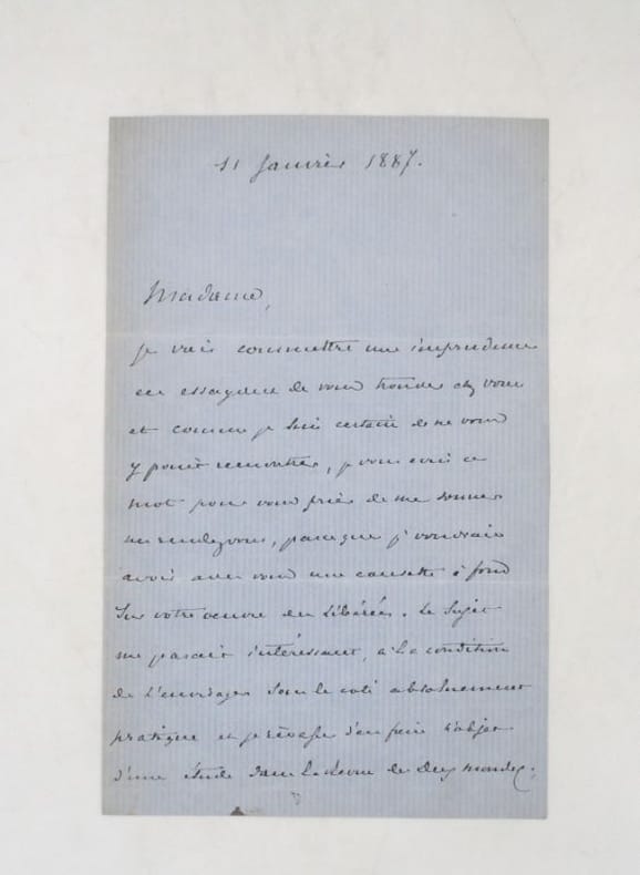 [Paris], 11 janvier 1887. In-8, 2 pp. (minuscules déchirures marginales).
