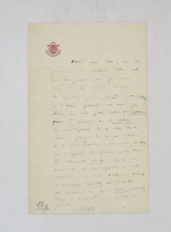 Lettre autographe signée à un auteur non identifié qu'il complimente et critique. Il lui conseille d'aller voir un tableau de David, Barra, conservé à Avignon. * Membre du SLAM et de la LILA / ILAB Member. La librairie est ouverte du lundi au vendredi de 14h à 19h. Merci de nous prévenir avant de passer,certains de nos livres étant entreposés dans une réserve.