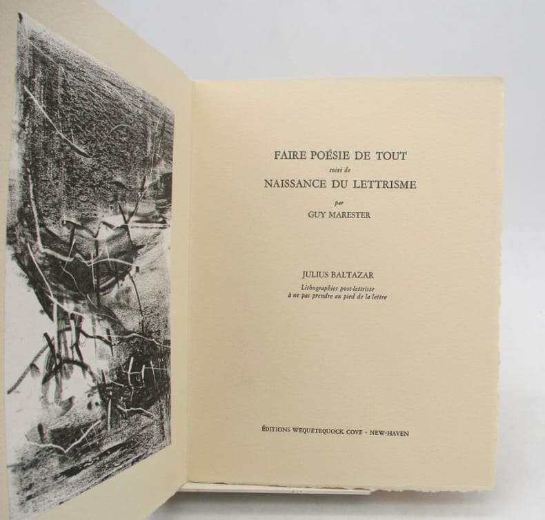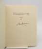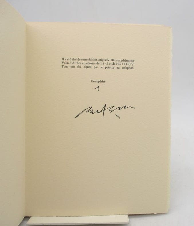 Édition originale illustrée de deux lithographies en noir de Baltazar. Un des 45 exemplaires sur vélin d'Arches, celui-ci le premier, signé à la justification par l'artiste et comportant un envoi autographe signé de l'artiste accompagné d'une encre. * Membre du SLAM et de la LILA / ILAB Member. La librairie est ouverte du lundi au vendredi de 14h à 19h. Merci de nous prévenir avant de passer,certains de nos livres étant entreposés dans une réserve.