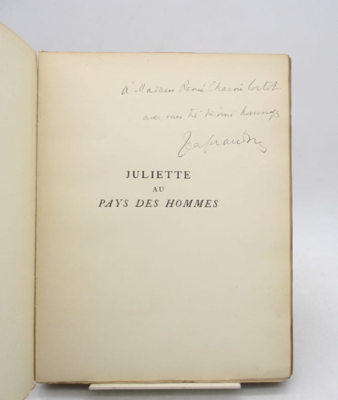Edition originale tirée à 1000 exemplaires sur papier Outhenin-Chalandre, avec un ENVOI AUTOGRAPHE de l'auteur à Mademoiselle Desormière, fille du compositeur et chef d'orchestre vichyssois. Juste avant de se marier avec son fiancer Gérard, Juliette ressent l'impérieuse nécécité de retrouver les hommes, réels ou imaginaires, qu'elle a croisé dans son enfance. Elle quitte Aigueperse, en Auvergne, et rejoint Paris pour un voyage initiatique au pays des hommes.