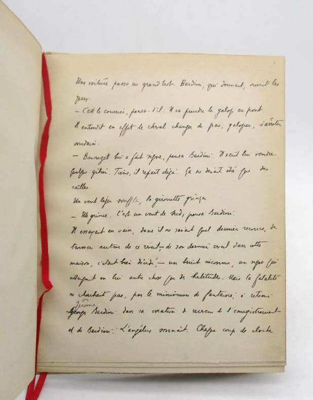 Manuscrit autographe signé de la première partie de la nouvelle Première disparition de Jérôme Bardini. La fin, qui s'achève sur le passage du miroir, est différente de la version imprimée, parue chez Sagittaire en 1926. * Membre du SLAM et de la LILA / ILAB Member. La librairie est ouverte du lundi au vendredi de 14h à 19h. Merci de nous prévenir avant de passer,certains de nos livres étant entreposés dans une réserve.
