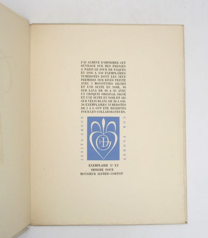 Édition illustrée de 14 eaux-fortes en noir et comprenant une préface inédite de Léon-Paul Fargue. Un des 50 exemplaires réservés aux collaborateurs, celui-ci l'exemplaire nominatif d'Alfred Cortot comportant une suite en noir. * Membre du SLAM et de la LILA / ILAB Member. La librairie est ouverte du lundi au vendredi de 14h à 19h. Merci de nous prévenir avant de passer,certains de nos livres étant entreposés dans une réserve.