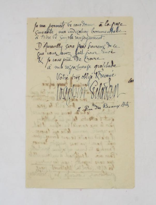 Lettre autographe signée à Aurélien Scholl, auteur et journaliste français qu'il remercie d'avoir décidé Valentin Simond de publier Curieuse dans l'Écho de Paris. Il s'agit du second roman de la saga Éthopée qui en comptera 21 au total. Elle a paru en feuilleton jusqu'à la publication d'un chapitre intitulé "L'adultère au Bon Marché". L'enseigne de grands magasins avait averti le journal de sa volonté de retirer ses publicités et donc lui faire perdre une part de son revenu. Il conclut sa missive en mentionnant Barbey d'Aurévilly dont il fut un proche. * Membre du SLAM et de la LILA / ILAB Member. La librairie est ouverte du lundi au vendredi de 14h à 19h. Merci de nous prévenir avant de passer,certains de nos livres étant entreposés dans une réserve.