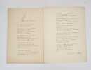 Poème autographe signé de 38 vers paru dans le recueil les Chants du désespéré, paru en 1920 aux Éditions de la Nouvelle revue française. * Membre du SLAM et de la LILA / ILAB Member. La librairie est ouverte du lundi au vendredi de 14h à 19h. Merci de nous prévenir avant de passer,certains de nos livres étant entreposés dans une réserve.