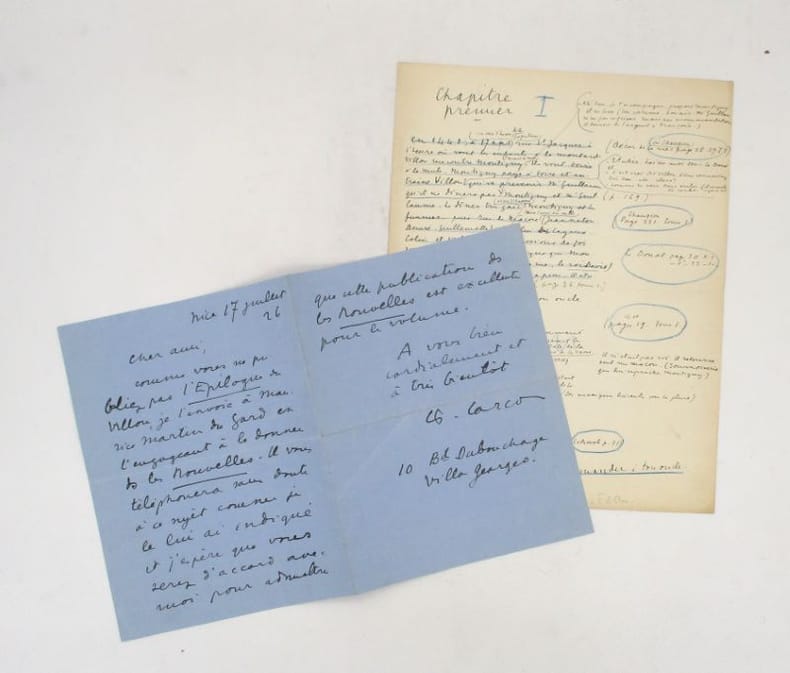 Nice, 17 juillet 1926. In-8, 2 pp. pour la lettre, in-4, 1 p. pour le fragment.