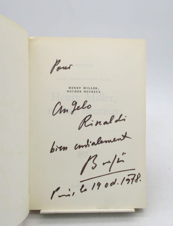 Édition originale illustrée de reproductions de photographies en noir et blanc de Brassaï. Exemplaire du service de presse comportant un envoi autographe signé du photographe à Angelo Rinaldi, journaliste français. * Membre du SLAM et de la LILA / ILAB Member. La librairie est ouverte du lundi au vendredi de 14h à 19h. Merci de nous prévenir avant de passer,certains de nos livres étant entreposés dans une réserve.
