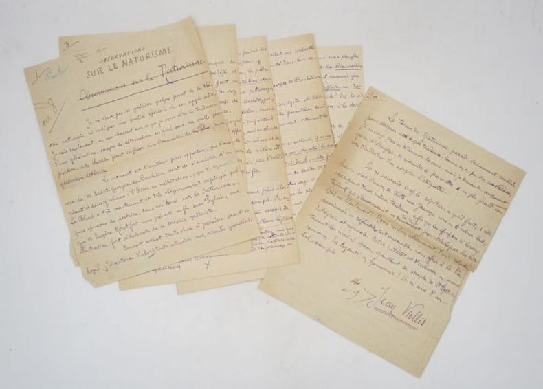 Essai manuscrit signé paru dans le Mercure de France de février 1897, véritable manifeste du Naturisme en littérature. Il est rédigé en réaction du Manifeste naturiste de Saint-Georges de Bouhélier et Maurice Le Blond (gendre de Zola) paru le 10 janvier 1897 dans Le Figaro. Annotations du typographe. * Membre du SLAM et de la LILA / ILAB Member. La librairie est ouverte du lundi au vendredi de 14h à 19h. Merci de nous prévenir avant de passer,certains de nos livres étant entreposés dans une réserve.