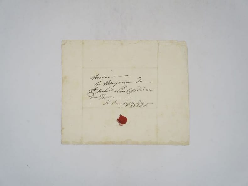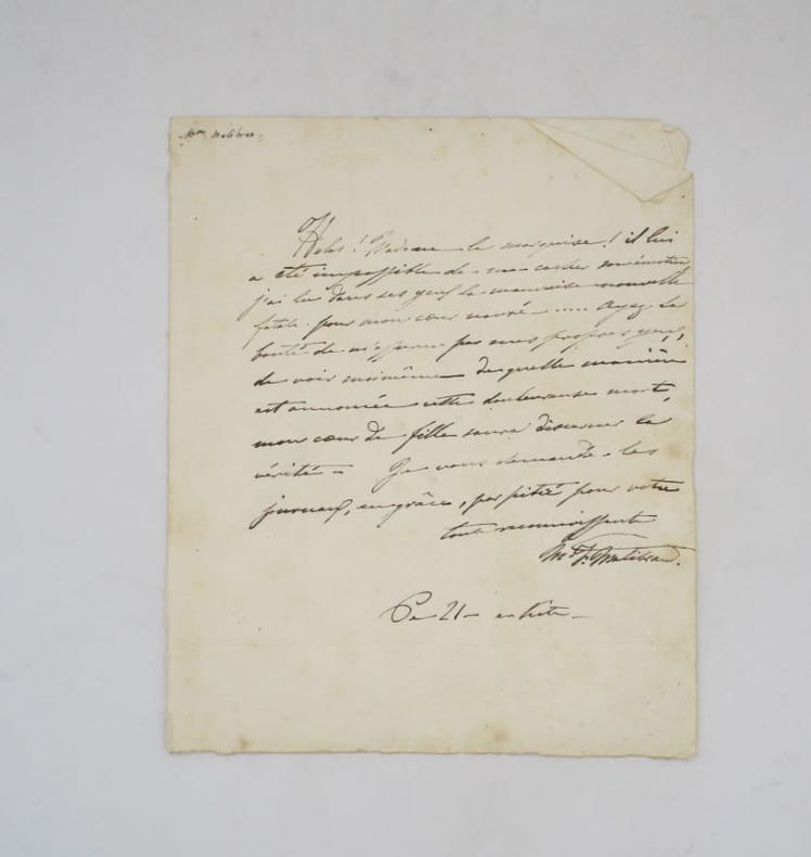 Lettre autographe signée à la marquise de Saint-Aulaire, ambassadrice en France à laquelle elle demande des journaux pour confirmer la mort d'une personne non citée, peut-être celle de Manuel Garcia, père de la Malibran, survenue le 9 juin 1832. [Collectif] La Malibran et Pauline Viardot, p. 126 [en ligne]. * Membre du SLAM et de la LILA / ILAB Member. La librairie est ouverte du lundi au vendredi de 14h à 19h. Merci de nous prévenir avant de passer,certains de nos livres étant entreposés dans une réserve.