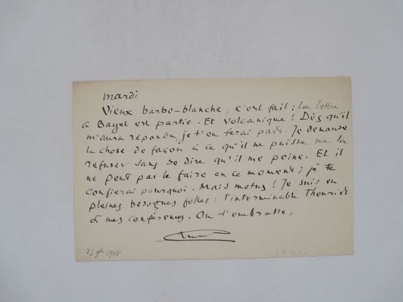 Lettre autographe signée à un "Vieux barbe-blanche" non identifié auquel il évoque une surcharge de travail à cause de "l'interminable Theuriet" probablement son discours pour son introduction à l'Académie française au fauteuil de ce dernier. * Membre du SLAM et de la LILA / ILAB Member. La librairie est ouverte du lundi au vendredi de 14h à 19h. Merci de nous prévenir avant de passer,certains de nos livres étant entreposés dans une réserve.