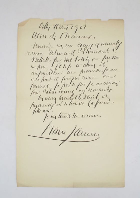 Très intéressant ensemble de manuscrits et autographes consacrés à l'écrivain Ferdinand Fabre (1827-1898), dans lequel l'auteur cite ses deux romans "Jean Savignac" et "Mademoiselle de Malavielle", et fournit notamment l'adresse de son grand ami le peintre Jean-Paul Laurens, grand illustrateur de son oeuvre et auquel il dédiera son roman "l'Abbé Tigrane".