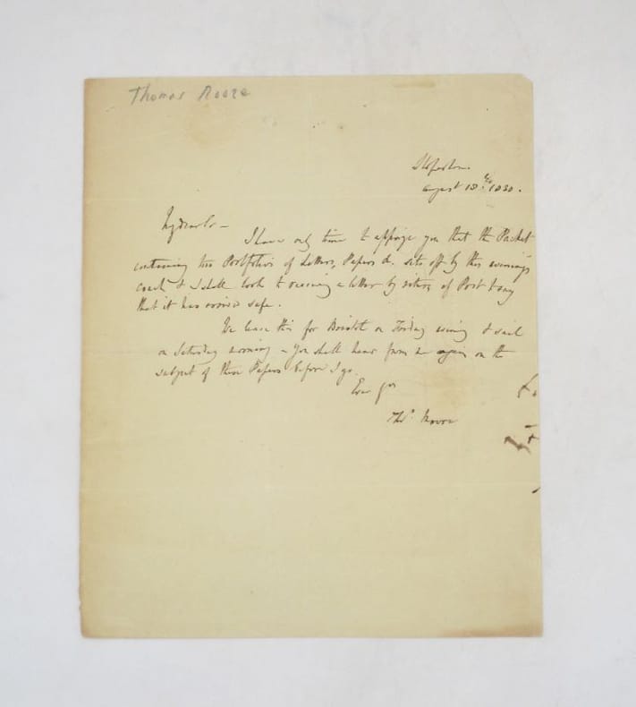 Sloperton, 18 août 1830. In-8, 1 p. (petites taches).