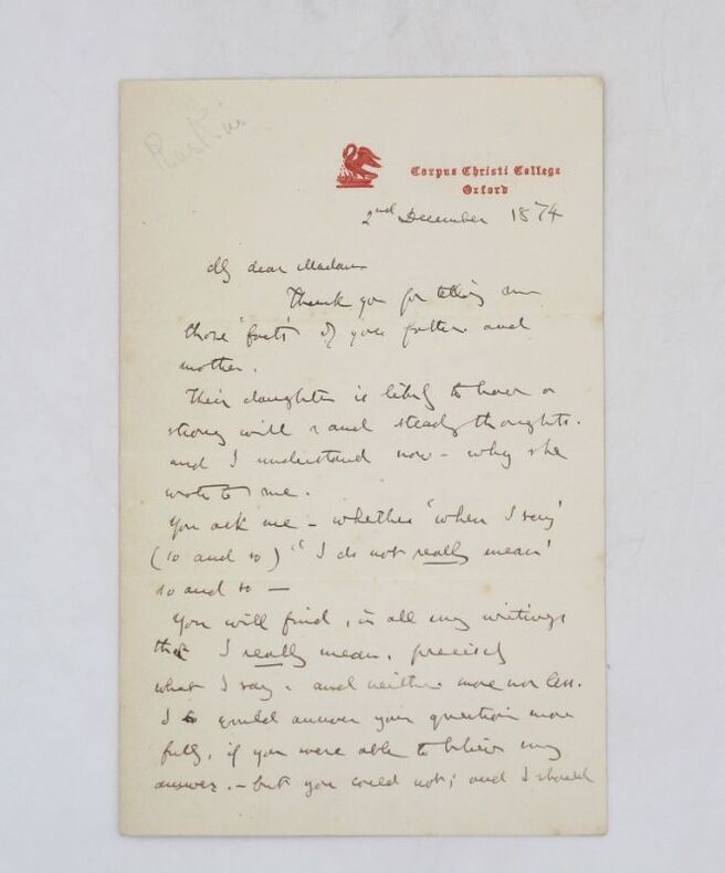 Oxford, 2 décembre 1874. In-12, 1 p. 1/2 (minuscules rousseurs).