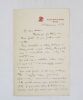 Lettre autographe signée à une destinataire non identifiée qu'il remercie des nouvelles de ses parents et à qui il affirme que dans ses écrits il dit ce qu'il pense. * Membre du SLAM et de la LILA / ILAB Member. La librairie est ouverte du lundi au vendredi de 14h à 19h. Merci de nous prévenir avant de passer,certains de nos livres étant entreposés dans une réserve.