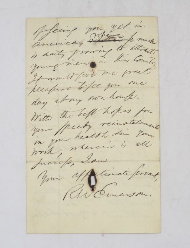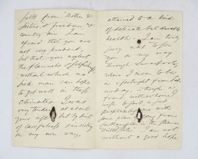 Lettre autographe signée à un destinataire non identifié qu'il interroge sur sa santé et qu'il regrette de ne pas voir lors de son prochain voyage à Liverpool. Il espère pouvoir le voir aux États-Unis qui attirent, selon lui, de plus en plus de jeunes hommes chaque jour. * Membre du SLAM et de la LILA / ILAB Member. La librairie est ouverte du lundi au vendredi de 14h à 19h. Merci de nous prévenir avant de passer,certains de nos livres étant entreposés dans une réserve.