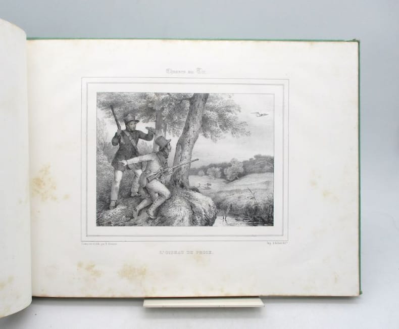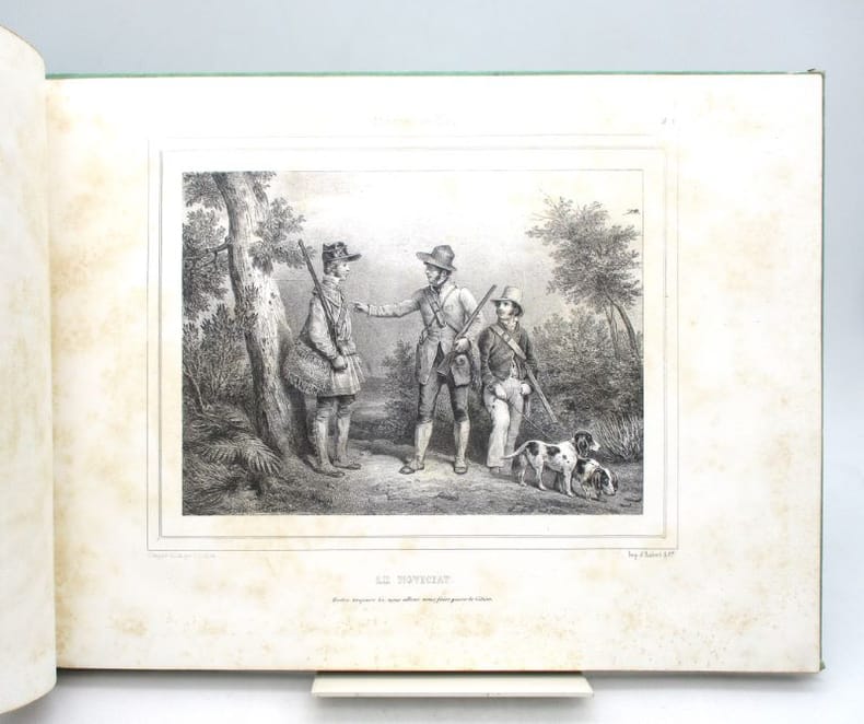 1840 Paris AUBERT ,sans date vers 1840,IN FOLIO oblong,titre illustre + 33 planches lithographiées en noir,complet,plats detaches,mouillures claires en coin sur l’ensemble des planches,+ catalogue editeur,fentes en marge sans manque a 2 planches ,tirage moyen ,dans l’etat- Remise de 20% pour toutes commandes égales ou supérieures à 100 €.