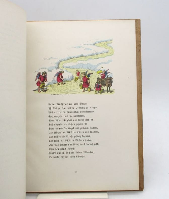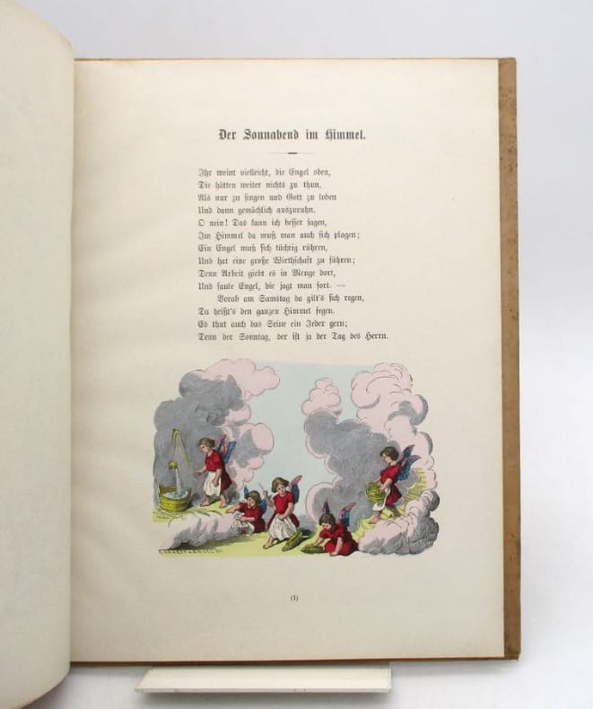Bel album illustré des compositions rehaussées de couleurs d'E. Graeff et Engel. Ex-dono en allemand daté de 1899. Bel état intérieur aux couleurs bien fraîches. * Membre du SLAM et de la LILA / ILAB Member. La librairie est ouverte du lundi au vendredi de 14h à 19h. Merci de nous prévenir avant de passer,certains de nos livres étant entreposés dans une réserve.