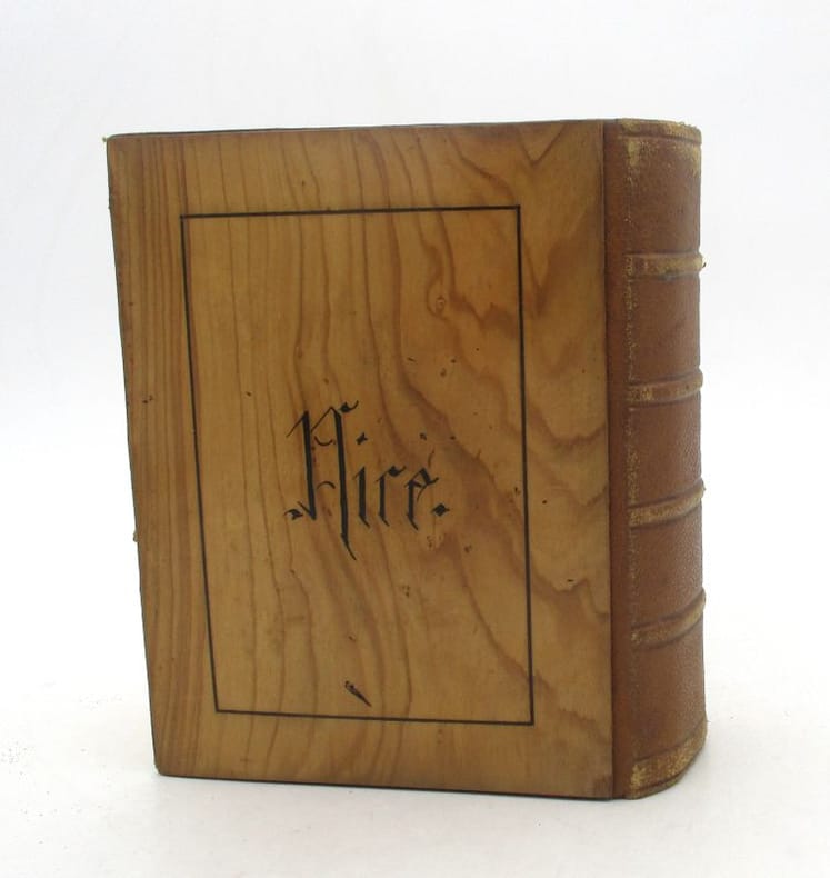 S.l., fin du XIXe siècle-début du XXe. Fort in-12, 42 pl., demi-basane havane, premier plat de marqueterie de bois représentant un bouquet de fleurs, le second avec une mention "Nire", tranches dorées (infimes épidermures, dos gauchi, quelques petites rousseurs et déchirures des onglets).