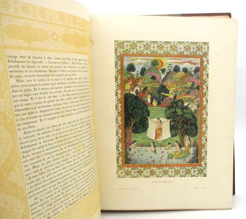 Jolie édition traduite par Mardrus et illustrée de miniatures, encadrements et enluminures provenant de manuscrits persans et hindous. Ex-libris de la bibliothèque du château de Saint-Jean, ex-libris doré Charles Colombier de Limoges. Bon état intérieur. * Membre du SLAM et de la LILA / ILAB Member. La librairie est ouverte du lundi au vendredi de 14h à 19h. Merci de nous prévenir avant de passer,certains de nos livres étant entreposés dans une réserve.