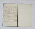 27 x 21 cm, 1 f. plié en quatre manuscrit sur trois volets. Daté du 16 avril 1939. une lettre d'amitié et même d'admiration de Maurice Sachs, avec cette annotation en haut à droite de la première page "Lettre de Maurice Sachs pour Pierre Béarn fort étonné."