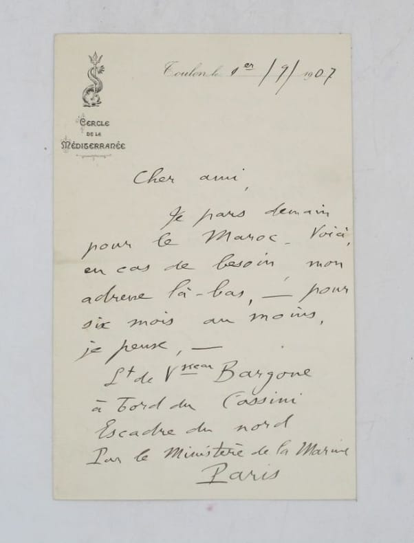 Toulon, 1er septembre 1907. In-8, 3 pp.