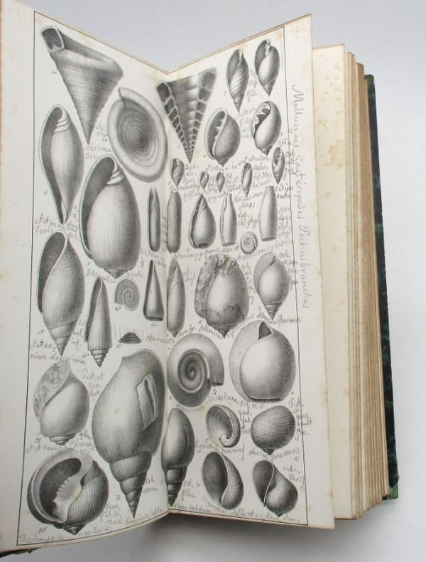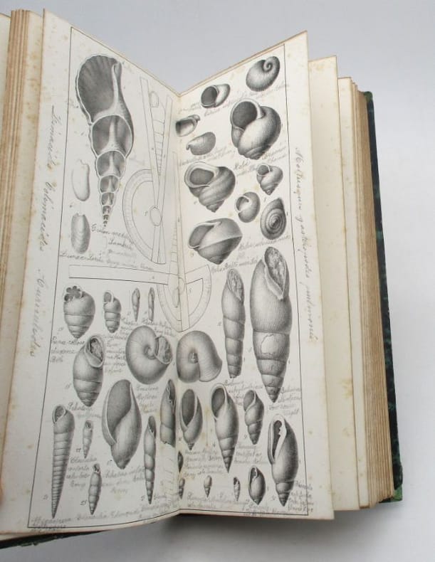 Deuxième édition des planches XLVIII à LXXXIX seules de l'atlas du célèbre ouvrage de Pictet. Elles représentent des spécimens de mollusques, en général une vingtaine par planche. La première a paru en 1844-1846 mais la présente édition a été augmentée de plus de 30 planches. Cet ouvrage ne contient pas la description des planches ni les légendes (qui ont été rognées) mais une main ancienne a annoté toutes les reproductions des noms scientifiques. * Membre du SLAM et de la LILA / ILAB Member. La librairie est ouverte du lundi au vendredi de 14h à 19h. Merci de nous prévenir avant de passer,certains de nos livres étant entreposés dans une réserve.