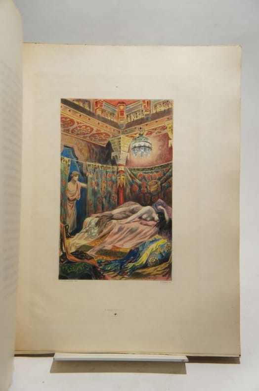 Illustré de 18 compositions de Georges Rochegrosse gravées à l'eau-forte en couleurs par E. Desicy. Tirage limité à 300 exemplaires, ici UN DES 60 SUR JAPON, exemplaire nominatif de l'imprimeur Philippe Renouard, paraphé par Ferroud. * Voir photographie(s) / See picture(s). * Membre du SLAM et de la LILA / ILAB Member. La librairie est ouverte du lundi au vendredi de 14h à 19h. Merci de nous prévenir avant de passer,certains de nos livres étant entreposés dans une réserve.