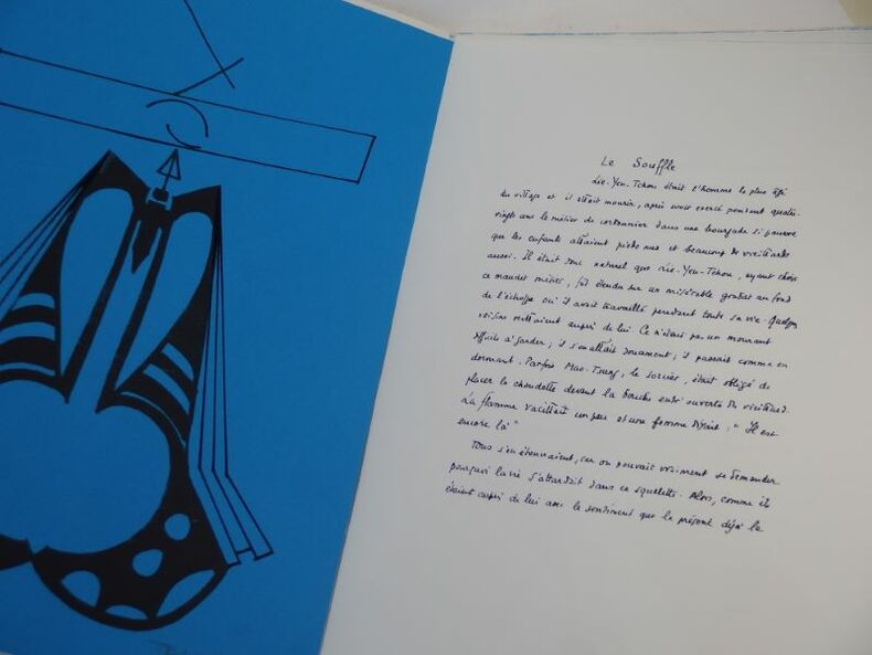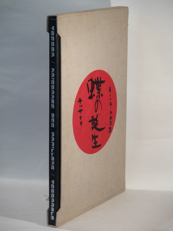 Aux dépens des amateurs, 1974. In-folio, (30) ff. et 15 pl., texte en français et en japonais, portfolio cuir noir, étui toile illustré.