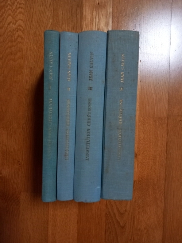 Sans les jaquettes. Couvertures un peu tachées et fanées (surtout pour le 1er tome). Intérieur très bon. Éditeurs: Jean CADIER et Pierre MARCEL, pasteur Michel RÉVEILLAUD à partir du T. II.